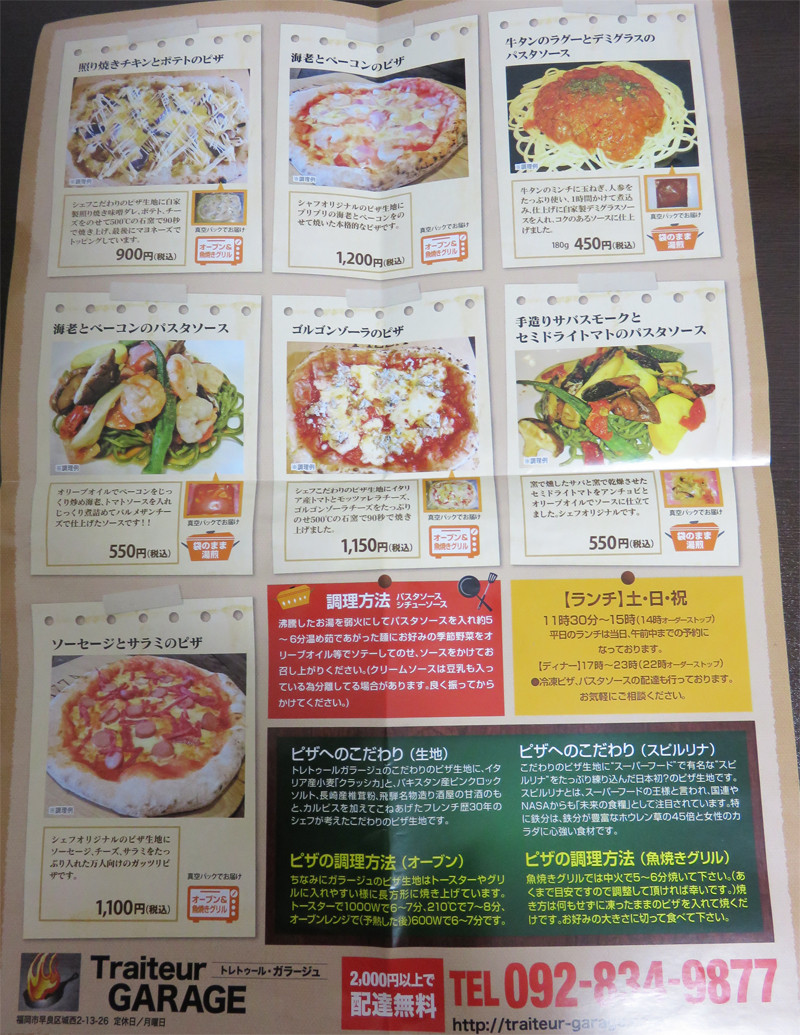 ピッツァやパスタソースなどのデリバリー(宅配)もされています。