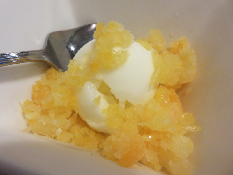 デザートは、柚子のシャーベットに早生みかんのガリガリを添えたもの。