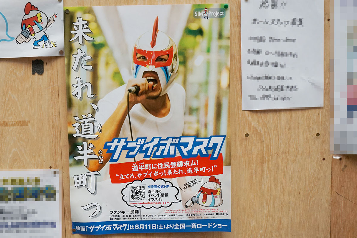 映画『サブイボマスク』では、『道半(みちなかば)町銀座商店街』という架空の名前で、