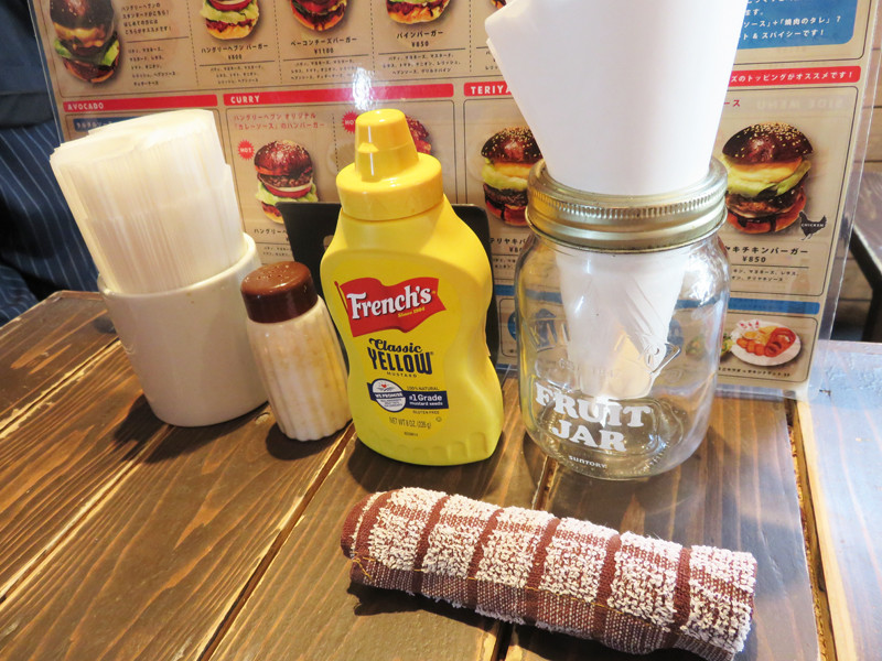 卓上に常備してある白いバーガー袋(袋状になった包み紙)にハンバーガーを入れ、