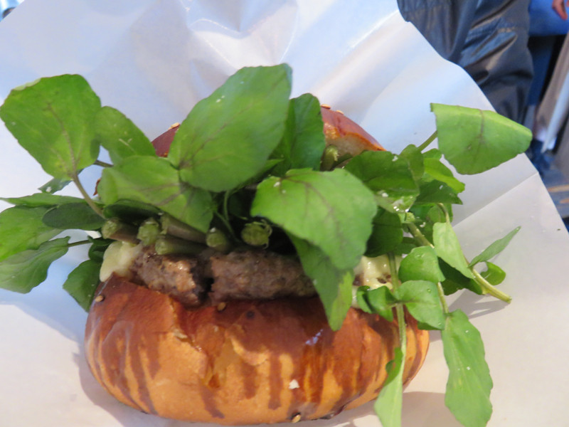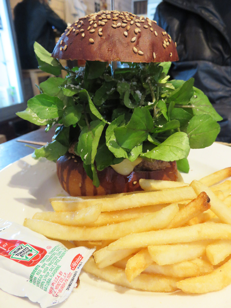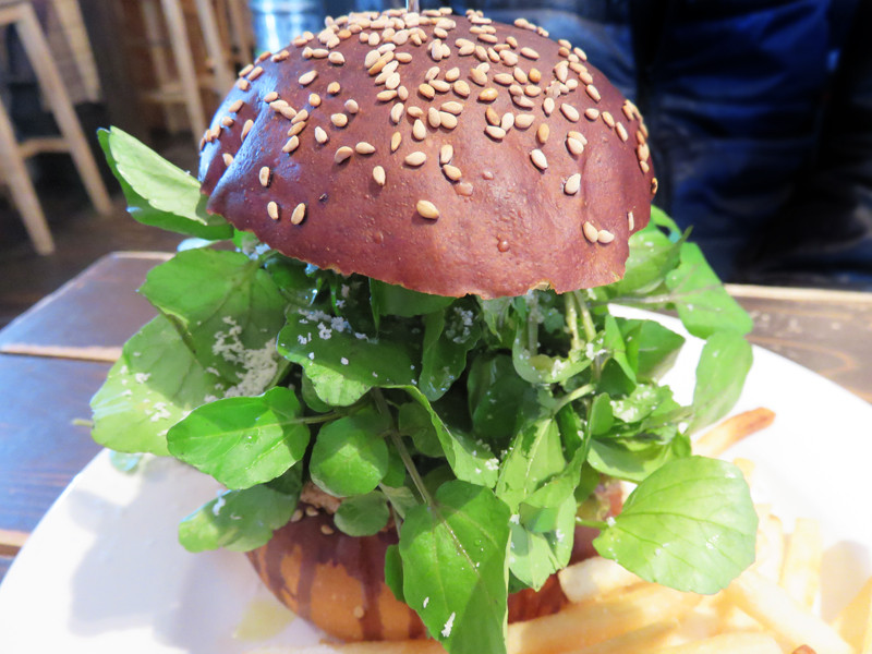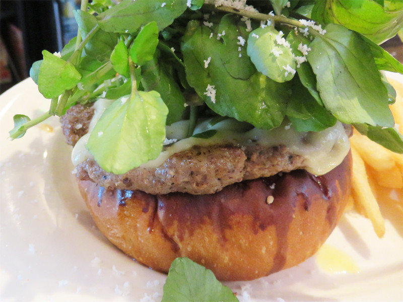 同僚は、新メニューのクレソンバーガー900円(税抜)。