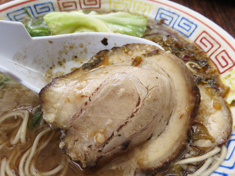 すごく大盛に見えますが、昔風の小振りなラーメン鉢なので、物足りない方は小ライス付き+100円がオススメです。