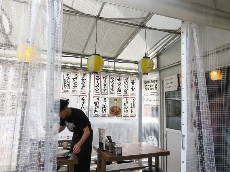 今回は、ビニールカーテンで仕切られた屋台のような席に案内されました。
