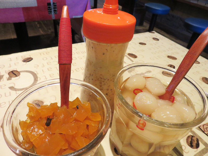 美味しいラッキョウと福神漬けは食べ放題です。