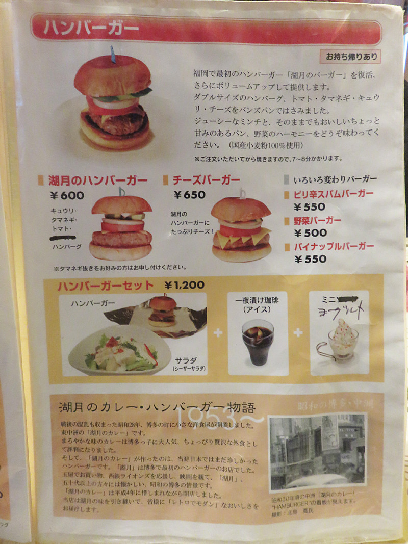 博多で初めてハンバーガーを出したという、博多中洲の湖月。