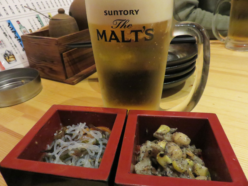 お通し(画像は2人分)は酒升に入ってました。