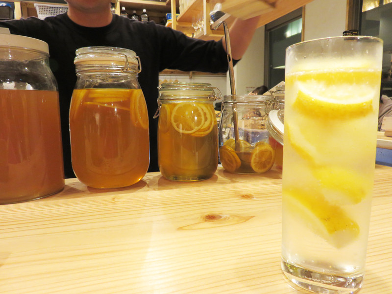 お店のオフィシャルドリンクのレモンサワーを飲んで、ウニプリンを食べて、