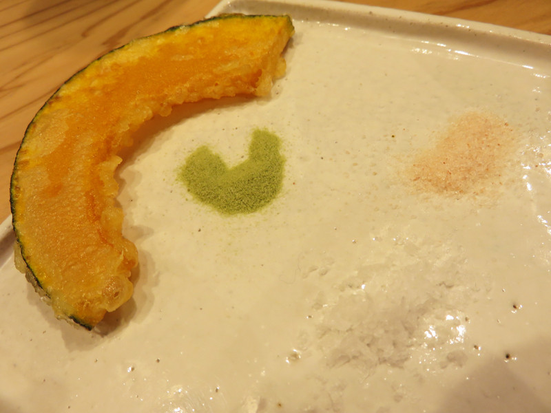 天ぷらを供される時にオススメの塩を知らせてくれます。