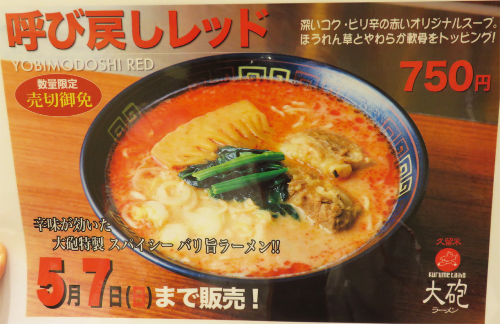 【福岡】ミシュラン豚骨店の呼び戻しレッド♪@久留米 大砲ラーメン KITTE博多店