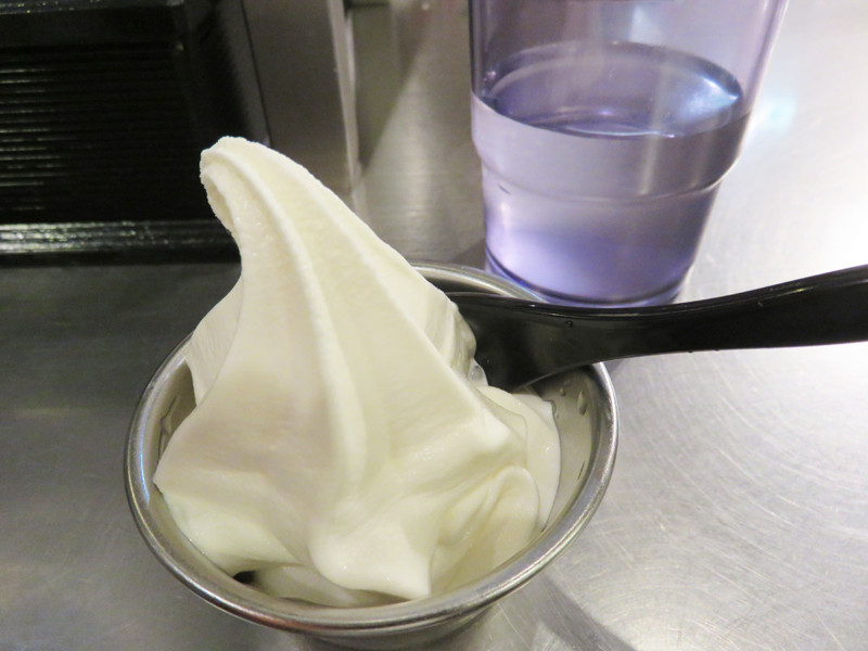 食べ終わると、スタッフがお皿を全部引いて、ソフトクリームを持ってきてくれます。