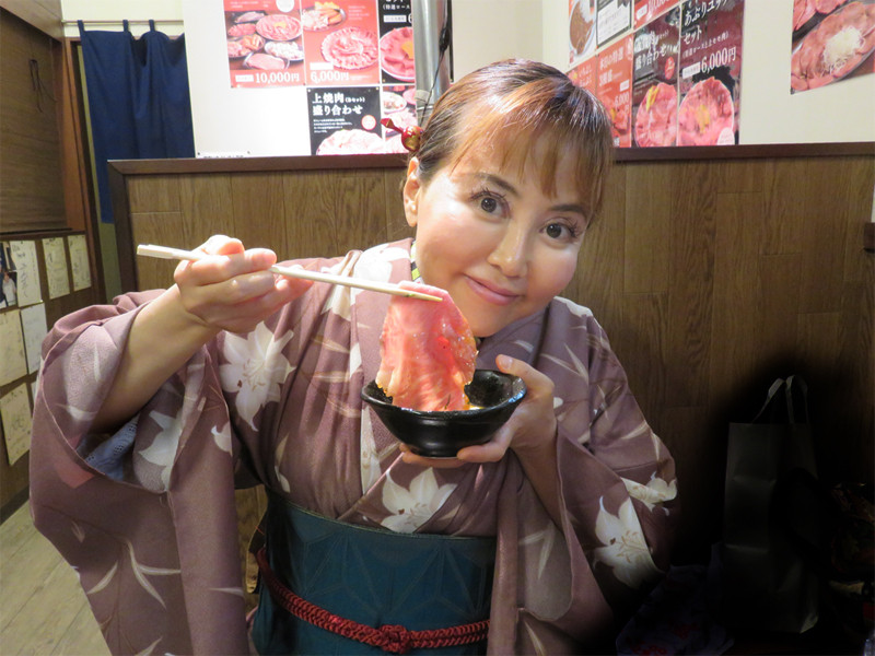 軽く焼きしゃぶにして、月見ユッケダレ(温泉玉子と甘口ダレ)を付けて頂きます。