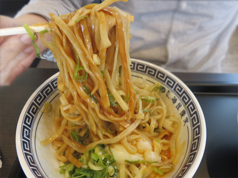 油そばの麺はラーメンの麺より太めです。