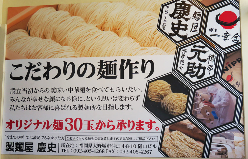 『製麺屋慶史』は、系列の博多一幸舎や博多元助(つけ麺専門店)だけでなく、
