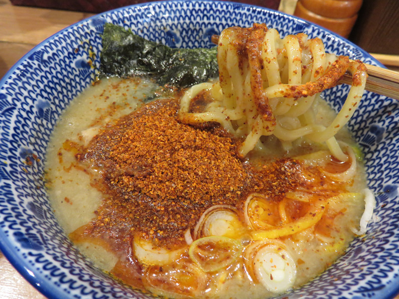 辛さの度合いはトッピングされている自家製辛魚粉の量もあると思いますが、