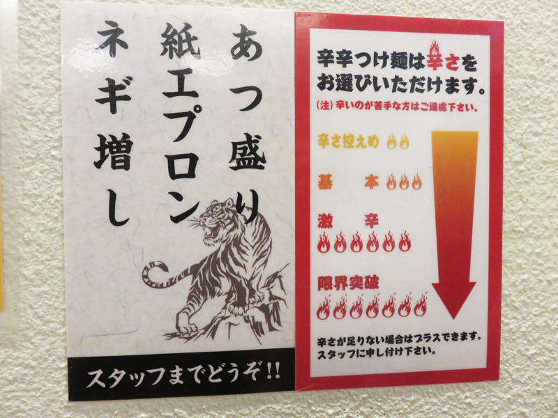 麺のあつ盛り・ネギ増し・紙エプロンも無料でリクエスト出来ます。