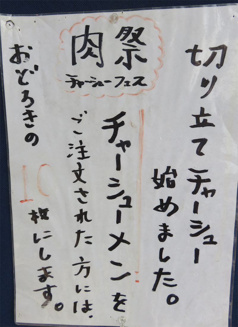 近年は、肉フェスが多く開催されてますが、こちらもチャーシューフェス(肉祭)をされてました(笑)。