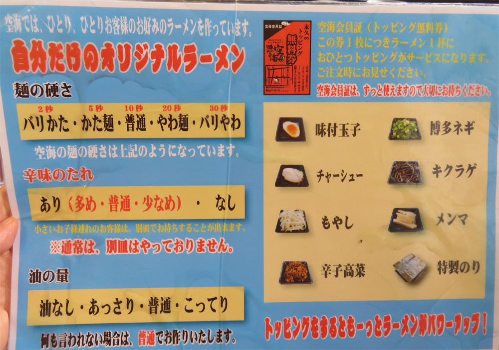 【福岡】メニュー豊富!ブタブタしいアロマの濃厚豚骨♪@拉麺 空海 那珂川本店