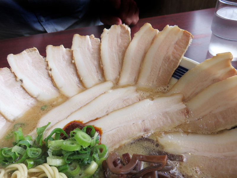 薄くスライスされた豚バラチャーシューの脂がバターのように美味しく、スープに馴染み、大変美味しいものでした。