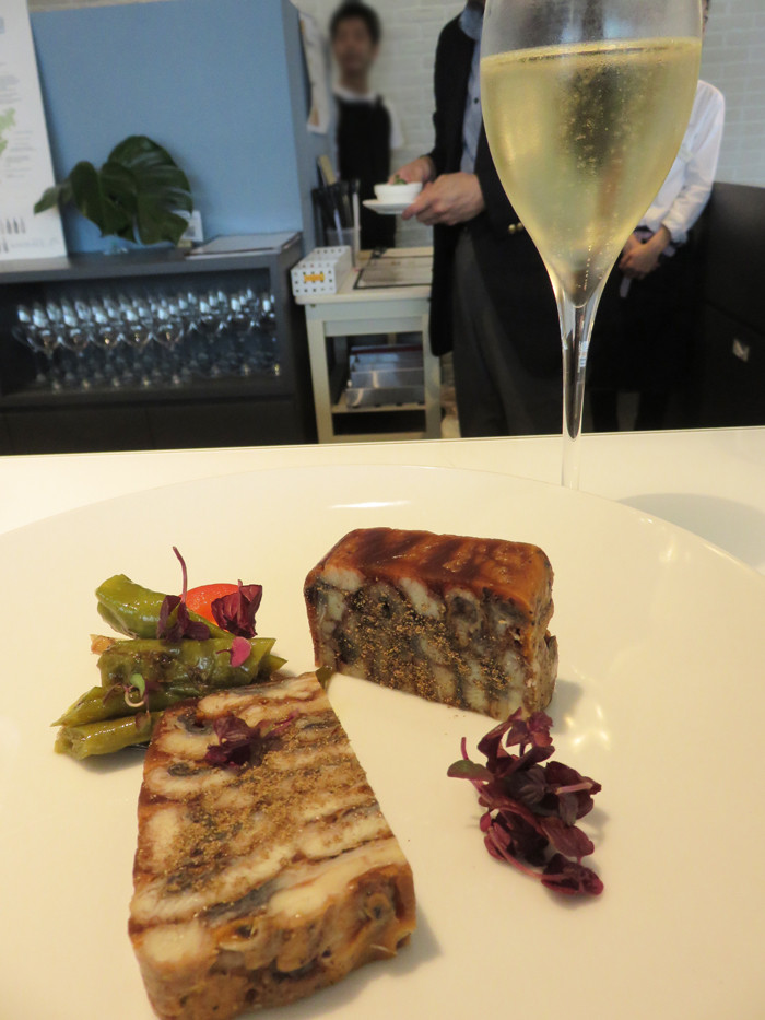 テリーヌには山椒がかけられていて、ボリューミーな赤ワインをスパイシーに演出します。