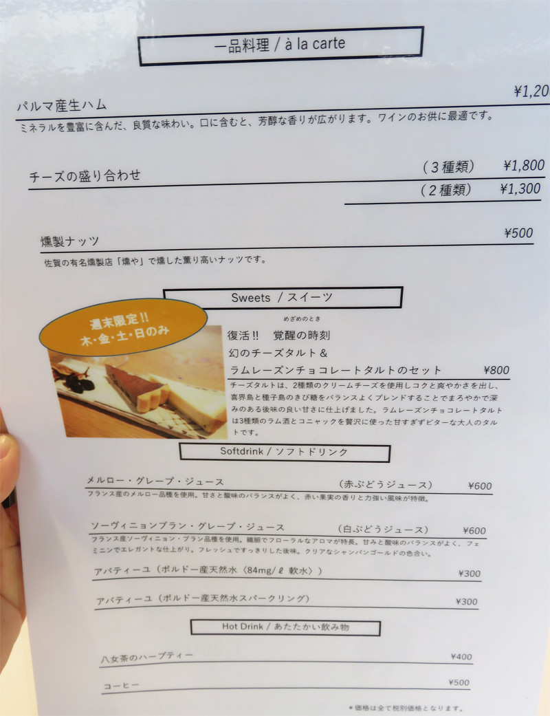 ワイン以外の食材やお皿は主に福岡・佐賀産のもので、地産地消を目指しておられるそうです。