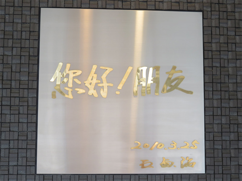 王会長直筆の文字をモチーフにしたピッカピカの表札。