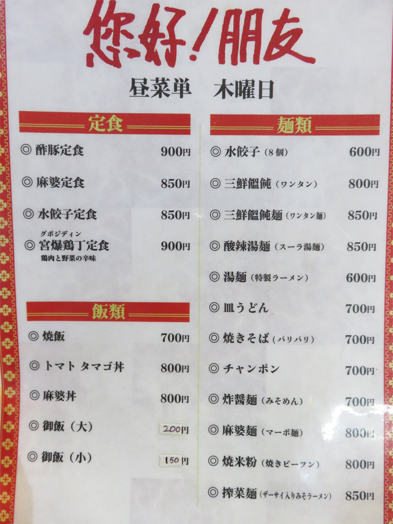 【店名】悠好!朋友(ニイハオポンユウ)