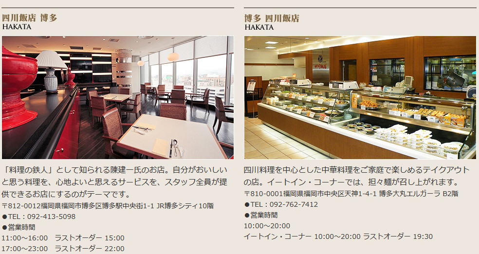 ※他に『四川飯店博多(JR博多シティ内)』もあります。