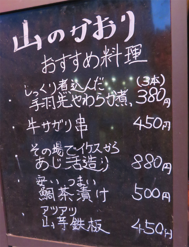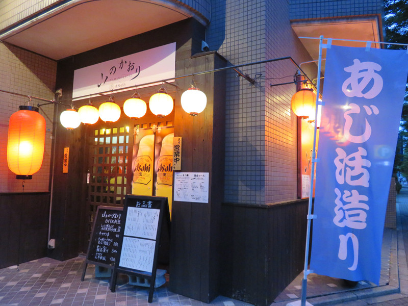 焼鳥屋なのに、店頭にはためいている『あじ活造り』の幟(笑)。
