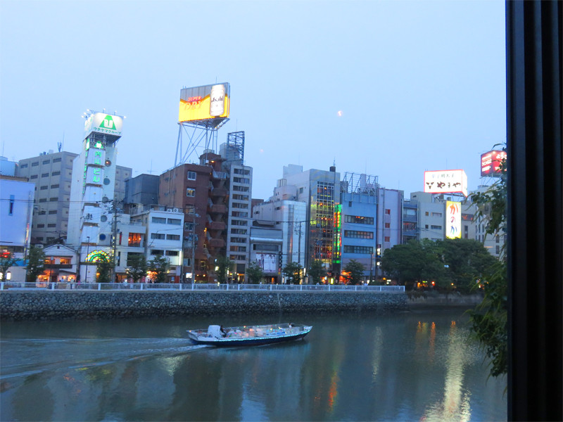 中洲のネオンが映る川面の景色を楽しめますよ。