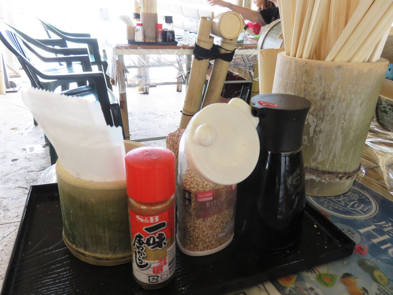 卓上には、醤油・一味・スリゴマもあります。