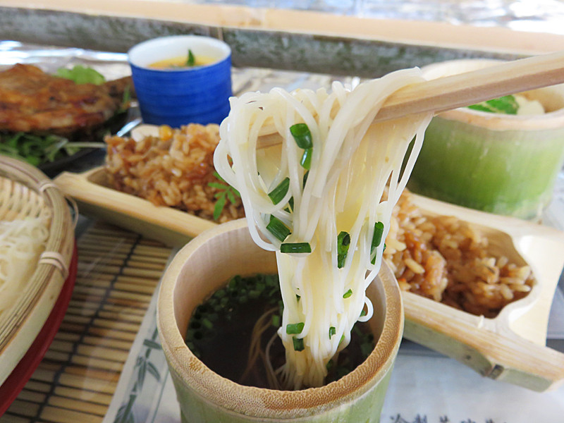 福岡市内で、そうめん流しランチを楽しみました。