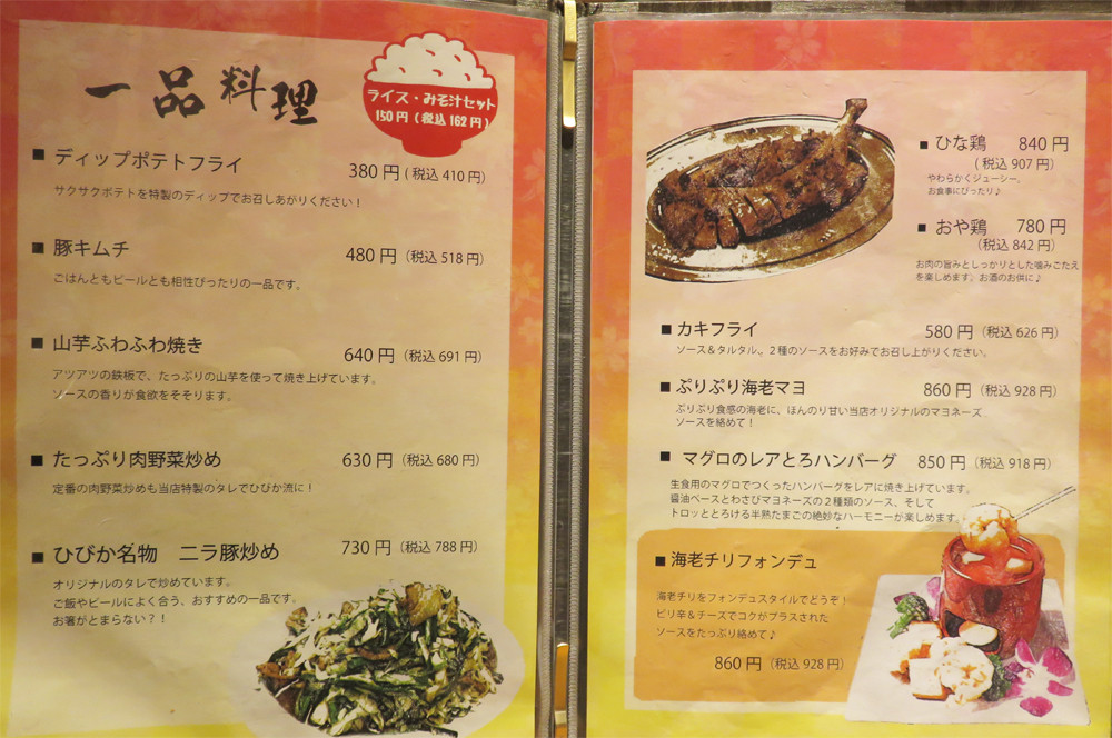 こちらは居酒屋仕様だけでなく、夜に定食(単品+ライス味噌汁セット)を頂けるお店でもあるので、