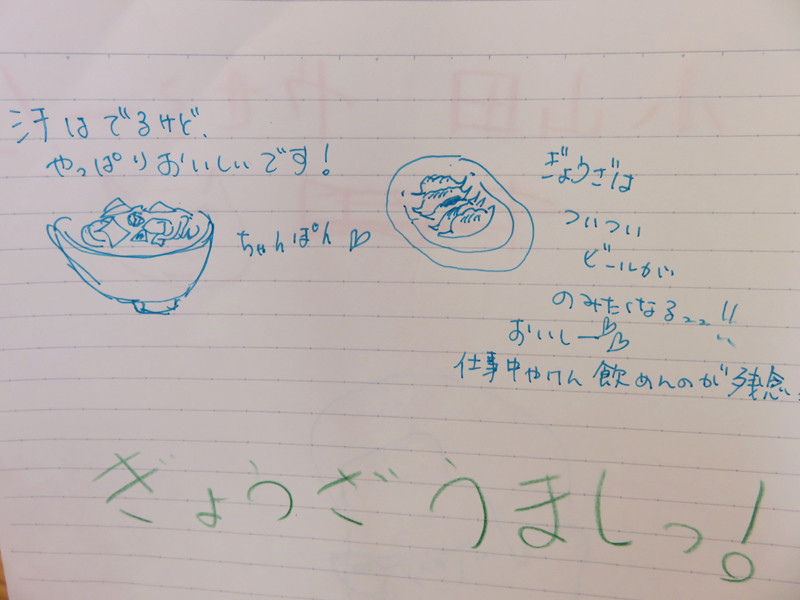 今回は餃子が売り切れだったのですが、次回は是非頂きたいですね。