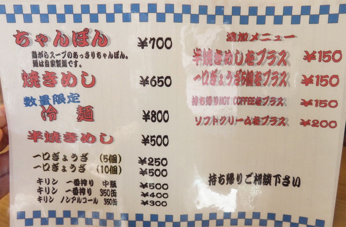 こちらは、チャンポン・ヤキメシ・ギョウザのみのお店です。