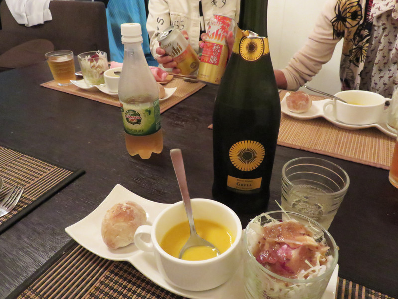 私はスパークリング1本と白ワインのボトル1本を持参しました。