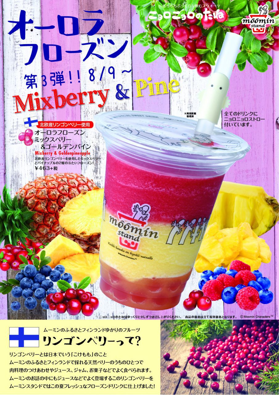 北欧産のリンゴン&ベリーのミックスベリーフローズンと、ゴールデンパインのフローズンが2層になったフォトジェニックなカラフルフローズンドリンクです。