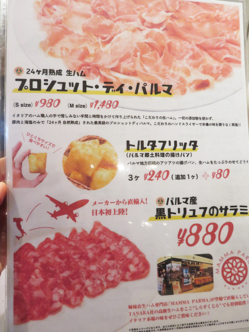 次回は、熟成パルマ生ハムや揚げパンを頂いてみたいです。