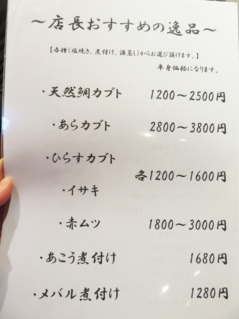 いつも魚料理は判を押したように磯貝名物の『つぼ鯛味噌焼き』を頼むことが多いのですが、
