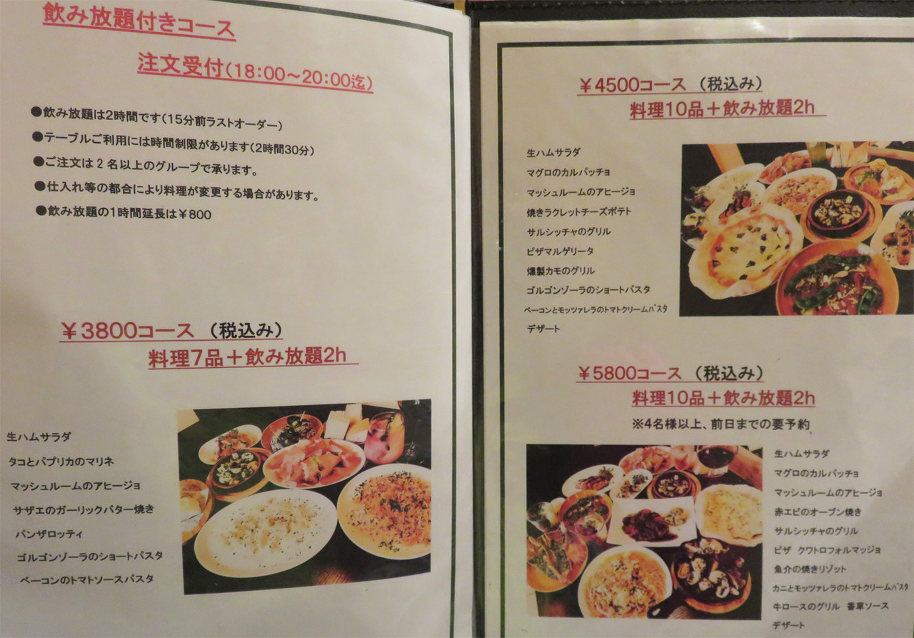 こちらはコースのメニューです。