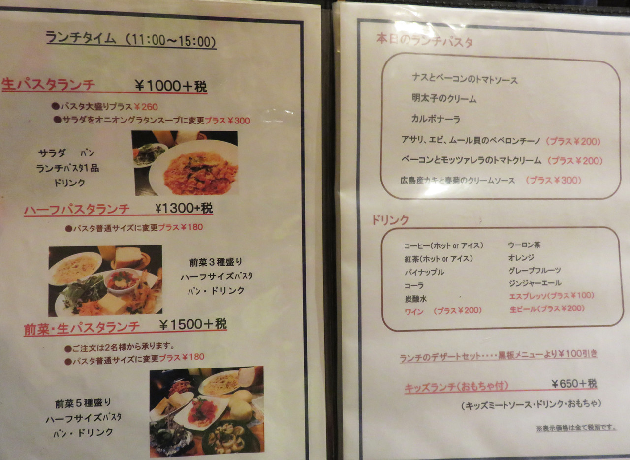 人気の生パスタは単品メニューも色々ありますが、