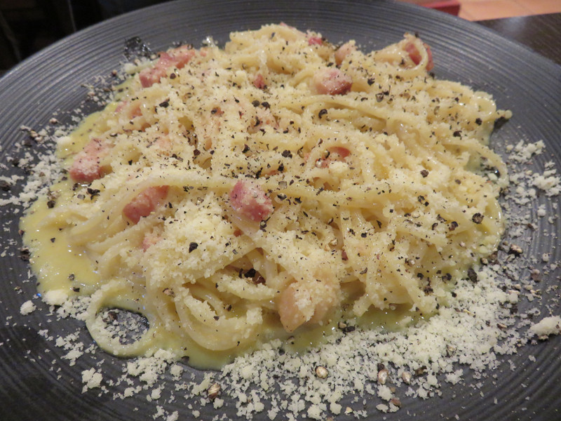 ローマ風なのか、生クリームでシャバシャバしてない濃厚カルボナーラです。