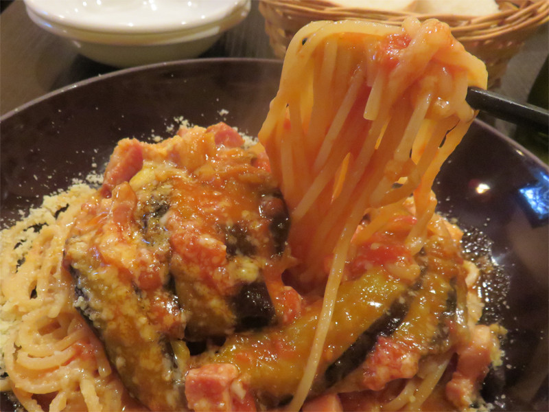 パスタは選べる6種類の中から『ナスとベーコンのトマトソースパスタ』にしました。