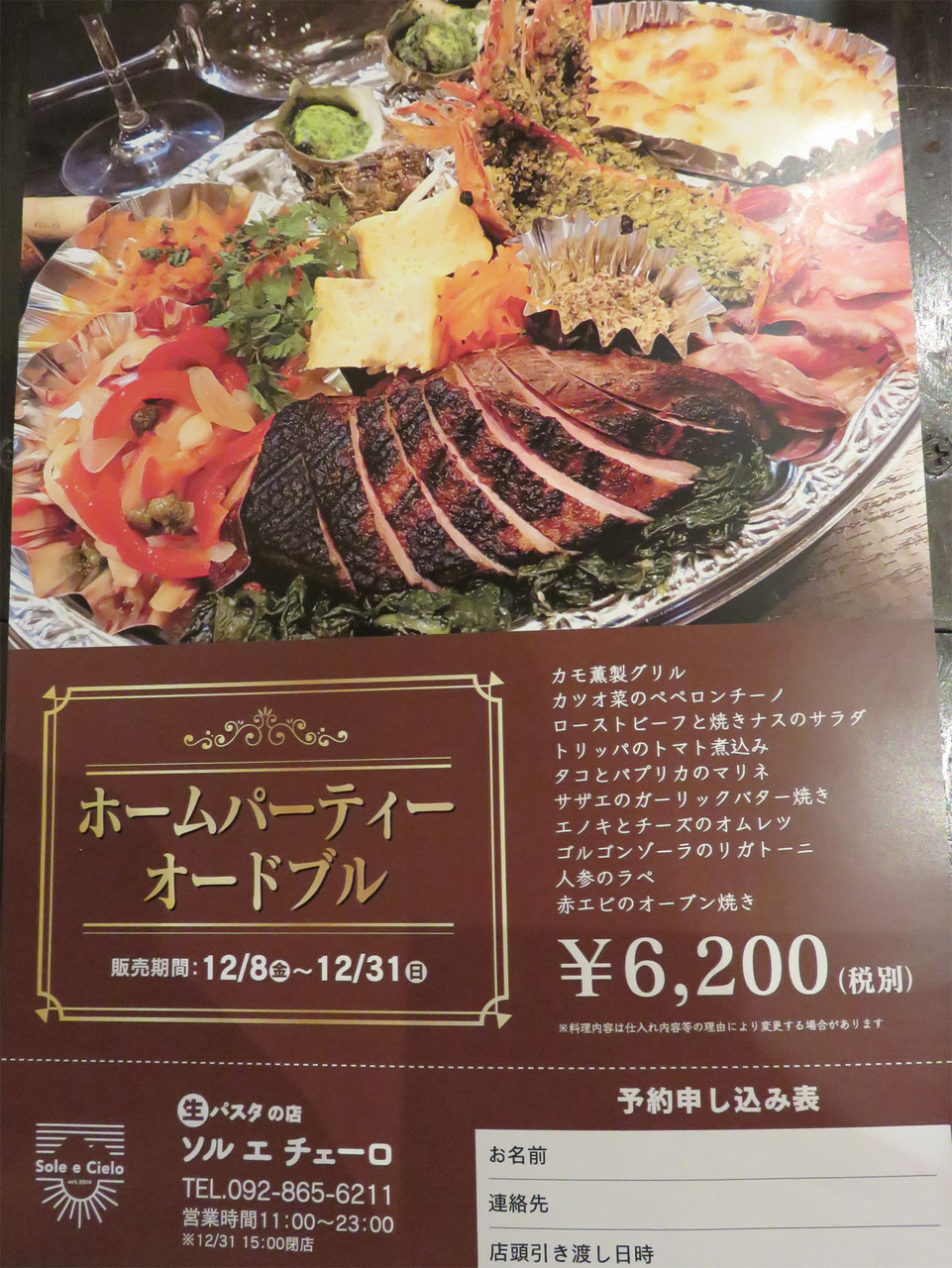 こちらは12月限定のオードブル盛り合わせです。