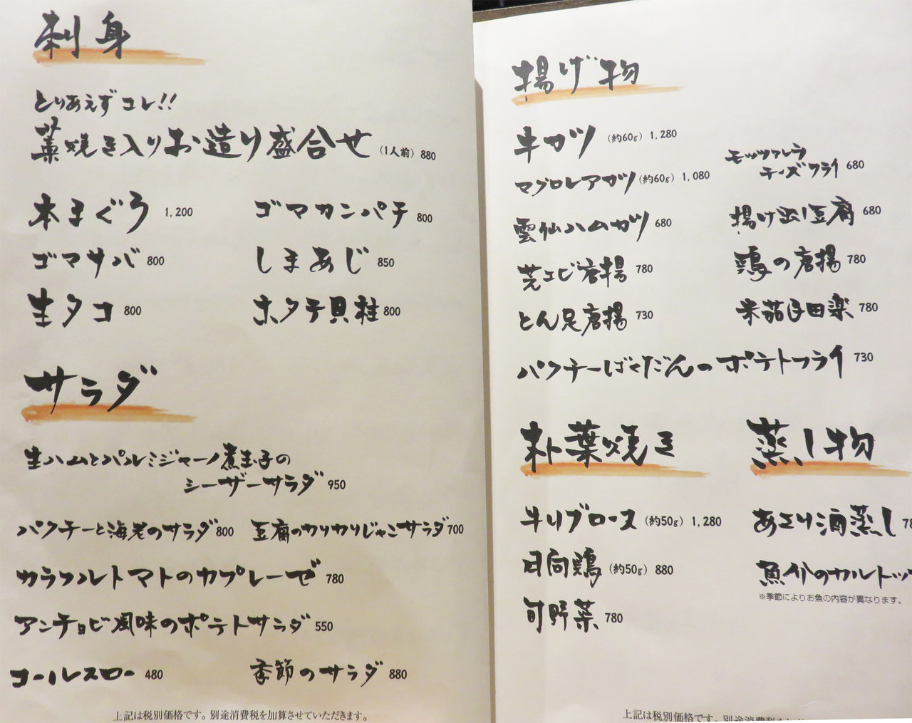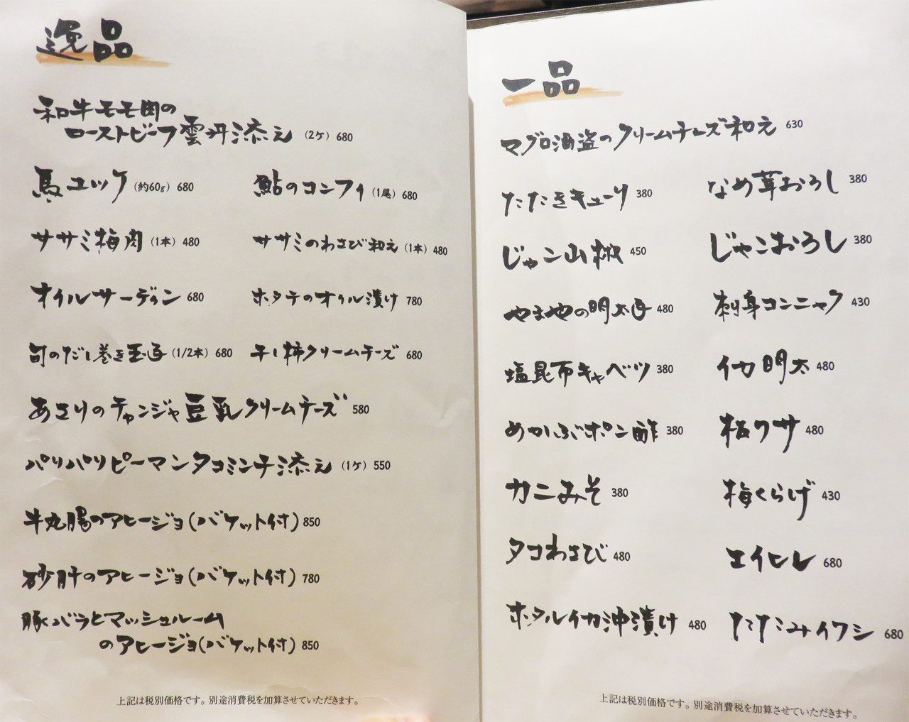 通常なら、お刺身類から頼むところですが、