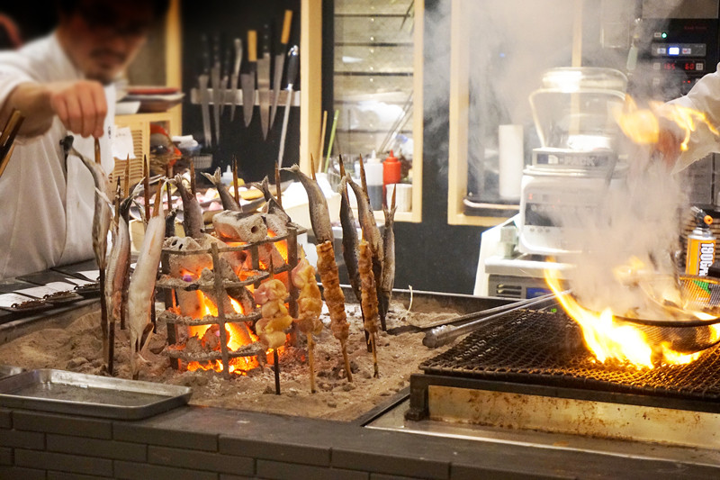 炉端焼きや藁焼きライブを観られるカウンター席はワクワクします。