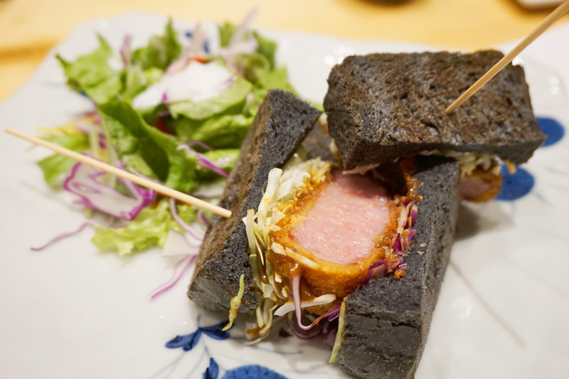 竹炭パンの雲仙ハムカツサンド。