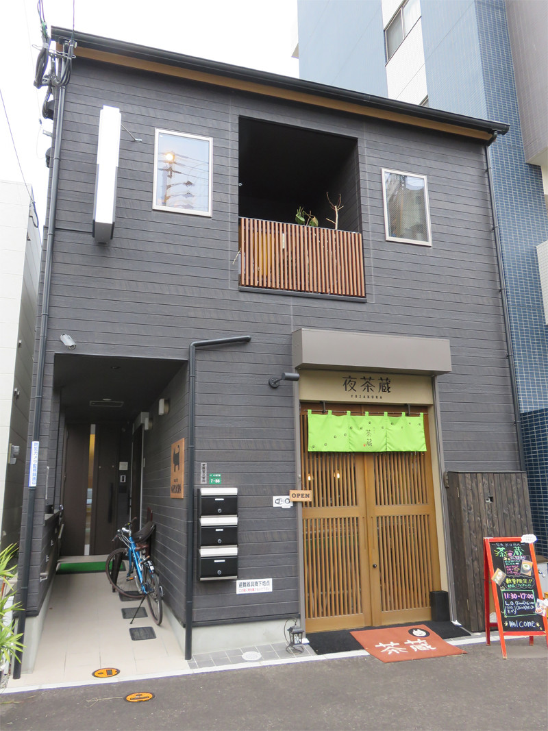 1階は、店舗スペース(昼はカフェ茶蔵、夜はバー夜茶蔵)と保護猫シェルター。