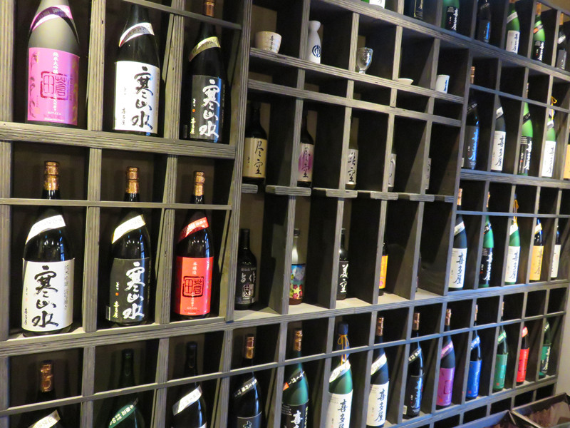 カウンター後ろには、福岡県八女の老舗蔵元『喜多屋』のお酒がずらりと並んでいます。