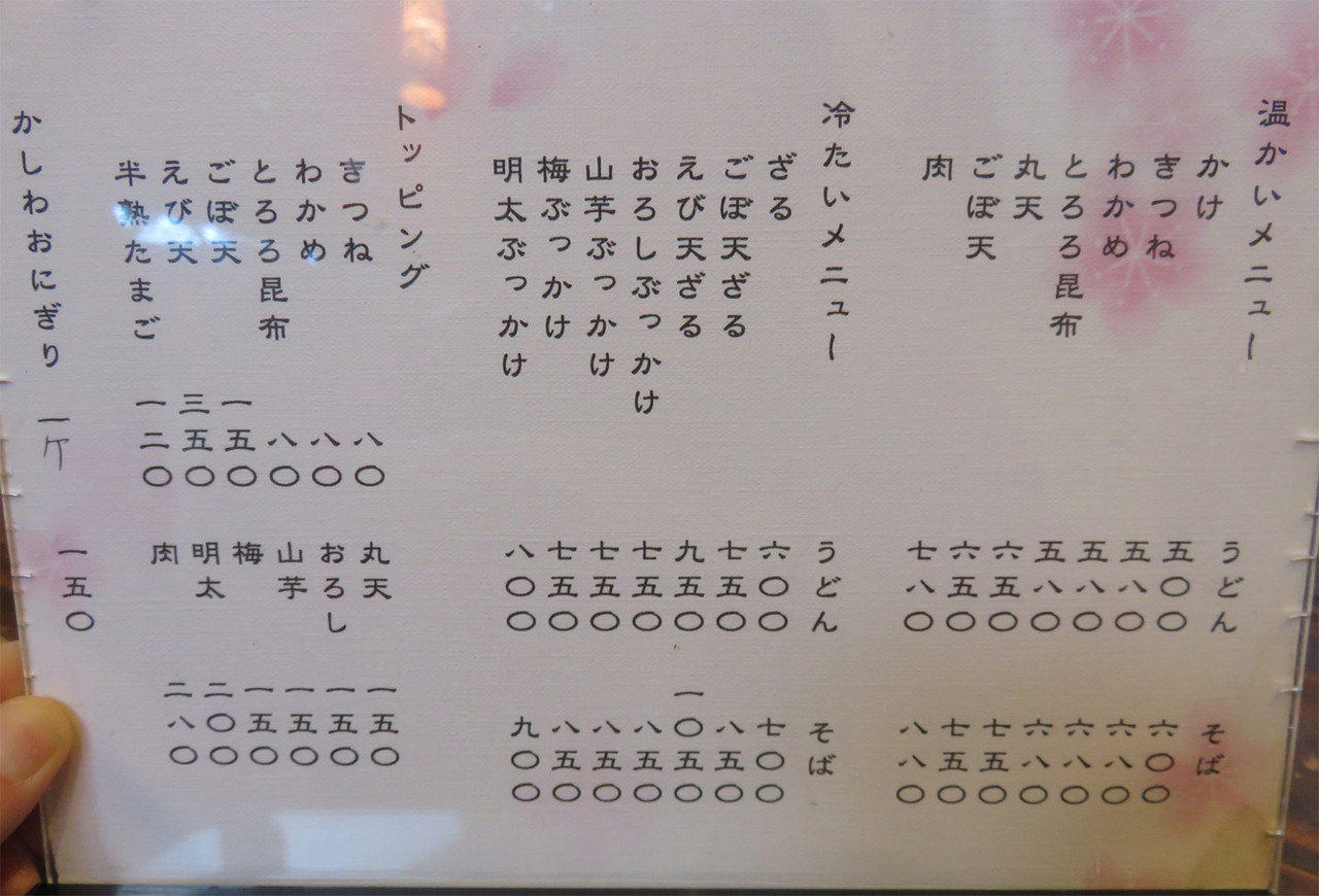 うどんと同じメニューで蕎麦もあります(うどんの100円増し)。