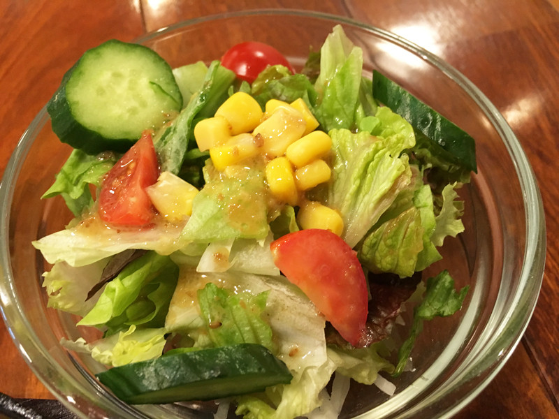 ミニサラダは、冷たくパリッとしてて美味しい。